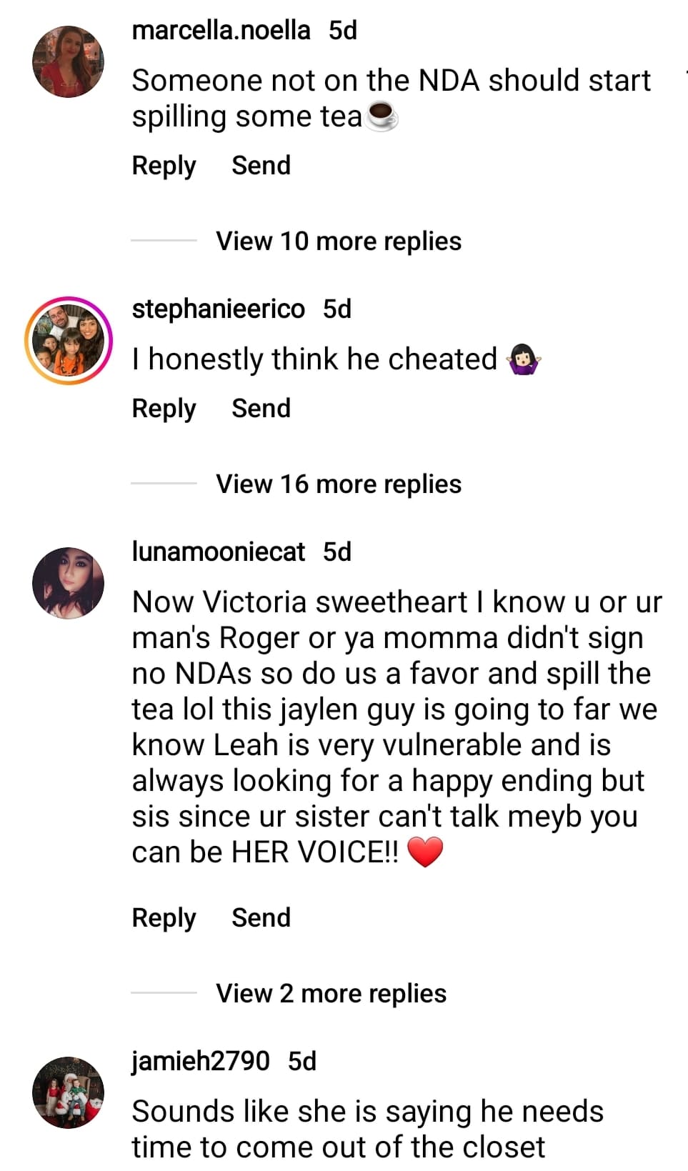 One commenter wants to see someone who didn’t sign an NDA “spilling some tea.” Echoing the sentiment, another Teen Mom viewer wrote, “Now Victoria sweetheart I know u or ur man’s Roger or ya momma didn’t sign no NDAs so do us a favor and spill the tea lol.”
